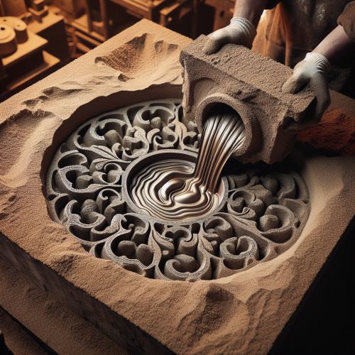 The mold is made from a mixture of sand, clay, and water. The sand provides the structure of the mold, while the clay binds the sand grains together and imparts strength to the mold. The mold must have the physical and chemical characteristics that can withstand the high temperatures of molten metal and not disintegrate or react with the metal.