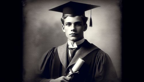 [[Image:Detail-145617.jpg|thumb|center|A black and white photograph of a young Michael Dukakis in a graduation gown, holding a diploma.|class=only_on_mobile]] | |||