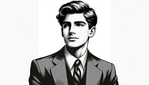 A black and white image of a young man in a suit, symbolizing John Bogle's early life and education.