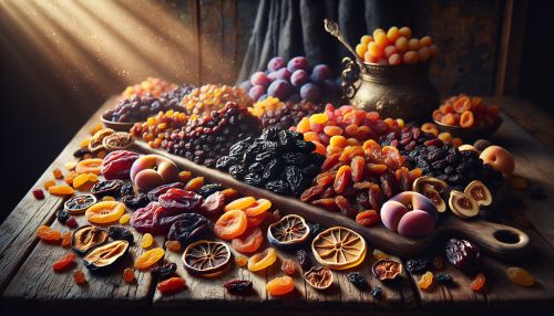 Dried fruit is a type of fruit from which the majority of the original water content has been removed either naturally, through sun drying, or through the use of specialized dryers or dehydrators. Drying fruit inhibits the growth of microorganisms by removing water, thus preventing the fruit from spoiling. It is a method that has been used for centuries to preserve fruit for long periods, especially in regions where fresh fruit was not always available year-round.