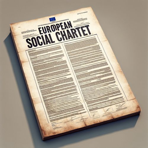 The European Social Charter is a treaty established by the Council of Europe to protect and promote social and economic rights. It was first adopted in 1961 and revised in 1996. The Charter sets out a broad range of everyday human rights related to employment, housing, health, education, social protection, and welfare. The Charter is a legally binding instrument which has been ratified by 43 of the 47 Council of Europe member states.