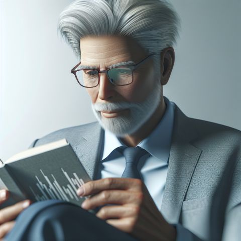 An image of an older man reading a book, symbolizing John Bogle's later life.