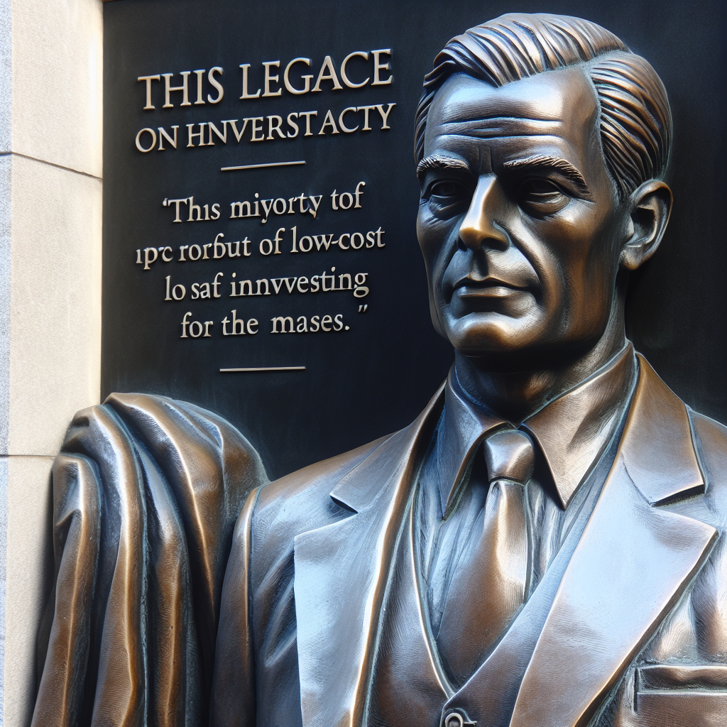 An image of a statue with a plaque, symbolizing John Bogle's legacy in the investment industry.