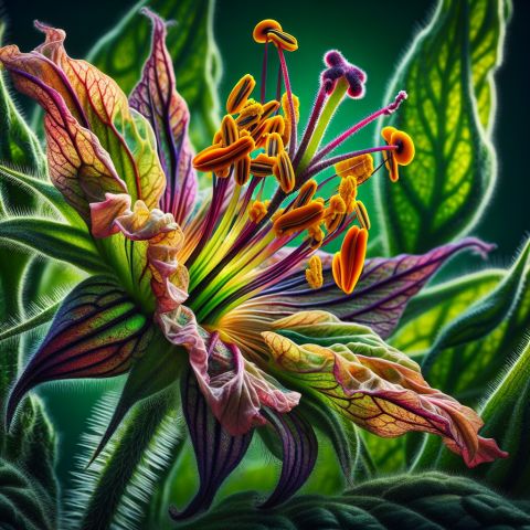 A close-up view of a flowering plant from the Solanales order, showcasing its unique morphological features.