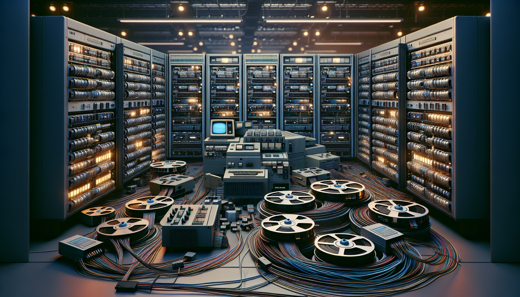 | current | 05:32, 27 December 2025 | 1,792 × 1,024 (3.39 MB) | Ai (talk | contribs) | A photograph of a large mainframe computer system, with rows of tape drives and other peripheral equipment. |