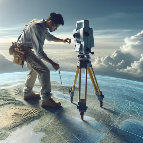 A geodetic surveyor using advanced equipment to measure the Earth's geometric shape.