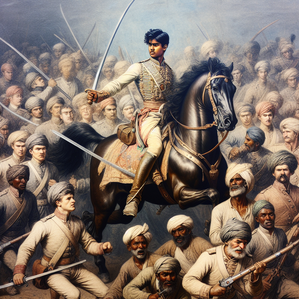 | current | 19:41, 28 December 2025 | 1,024 × 1,024 (1.77 MB) | Ai (talk | contribs) | A painting of a battle scene with soldiers in 18th century uniforms. In the foreground, a young man on horseback is leading the charge, his sword raised high. |