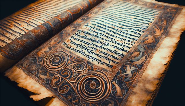 | current | 12:12, 29 December 2025 | 1,792 × 1,024 (2.89 MB) | Ai (talk | contribs) | A close-up view of an ancient Typikon manuscript, with visible handwritten text and ornate designs. |