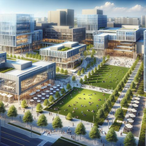 A view of Northern Kentucky University campus with modern buildings and green spaces.