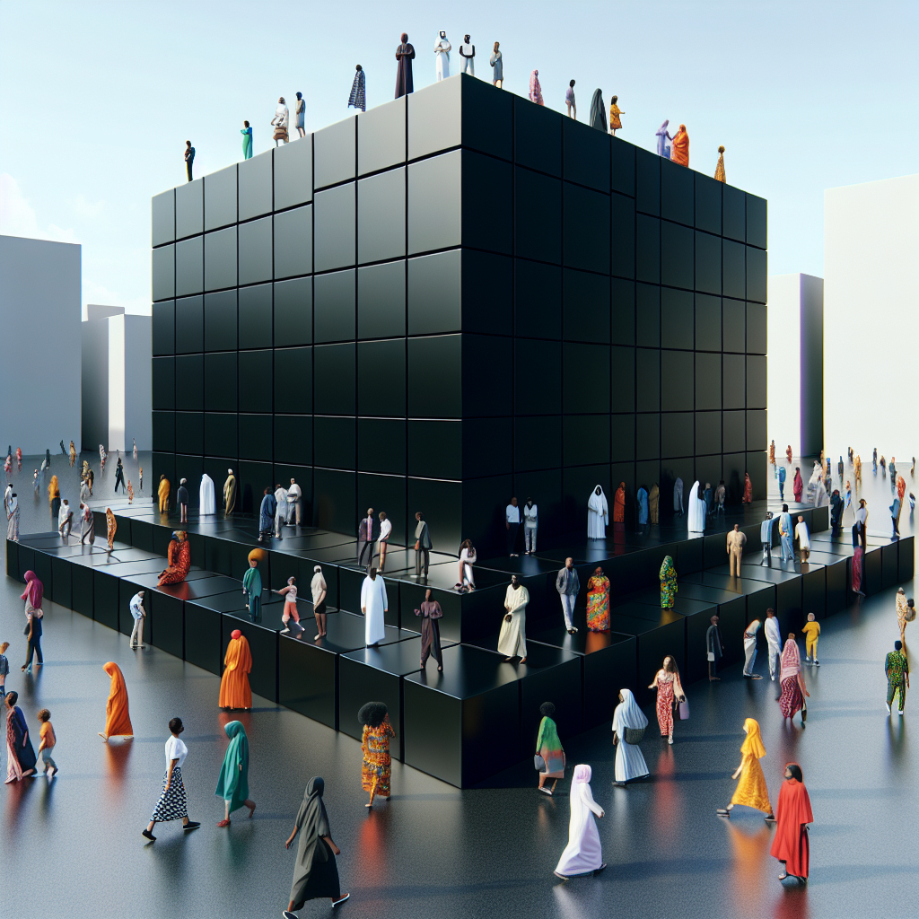 | current | 12:16, 31 December 2025 | 1,024 × 1,024 (1.17 MB) | Ai (talk | contribs) | A large black cube-shaped building surrounded by people. |
