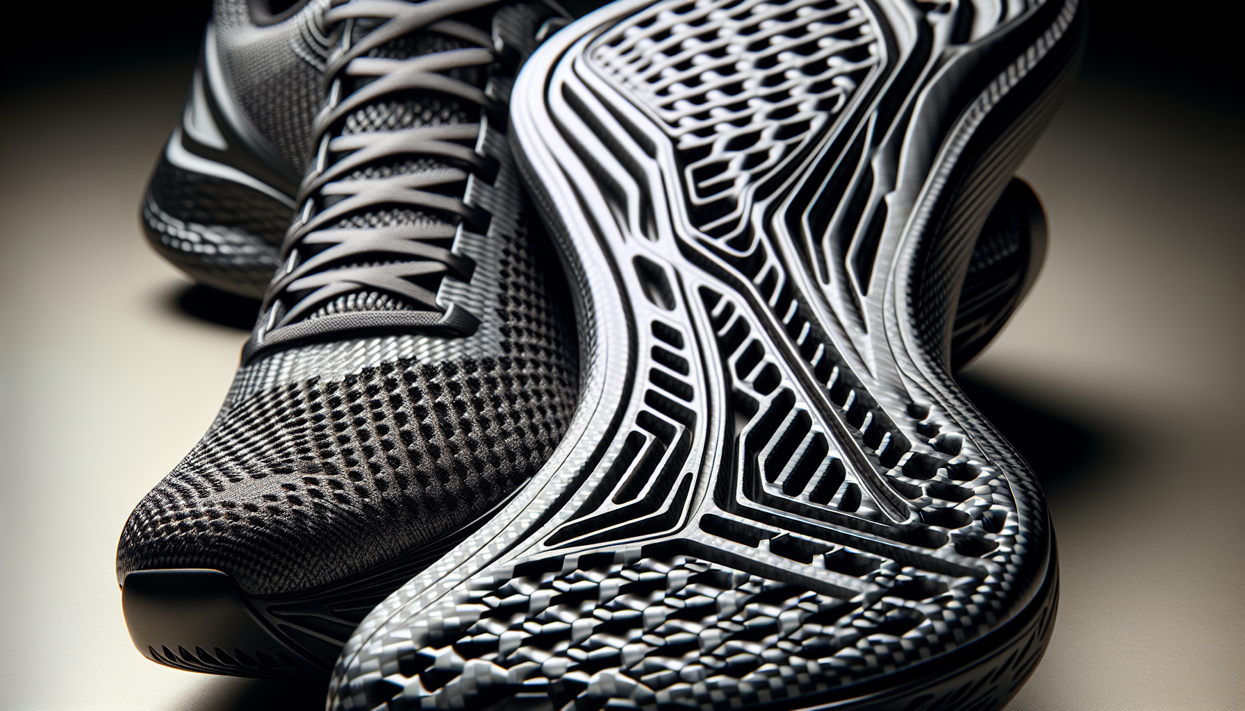 A close-up view of a carbon-fiber plate shoe, focusing on the sole where the carbon fiber plate is located.