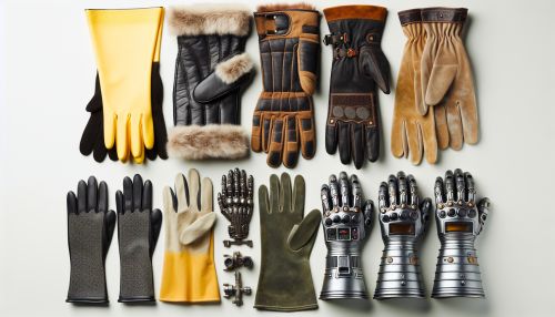 Gloves are a type of garment that primarily cover the hands. They are used for various purposes, including protection, hygiene, and fashion. Gloves are made from a wide range of materials, including leather, rubber, latex, and fabric, each with its own specific uses and benefits. They can be designed to cover the entire hand or just certain fingers, depending on their intended use.