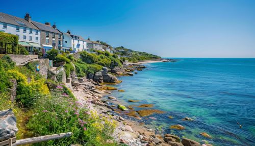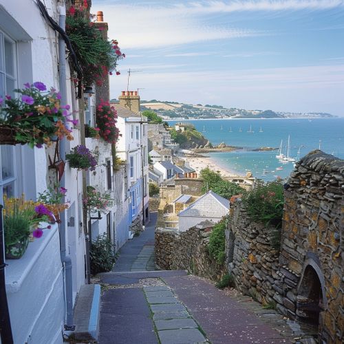 A picturesque view of Penzance, a coastal town in Cornwall, England.