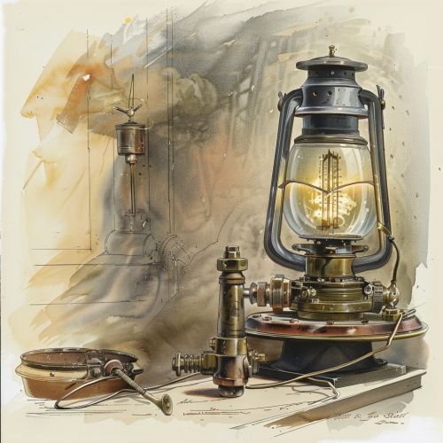 A depiction of the Davy safety lamp, a significant invention in industrial safety.